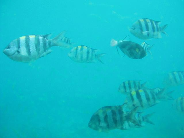 間近に泳ぐ魚を眺めているとゆったりした気分になってくる。同じブセナリゾート内には「グラスボート」という、船底がガラスでできた