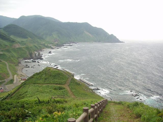 売店を挟んで反対側の展望台の先にはさらに海に近い小山まで一気に下る遊歩道があるが、時折立っていられないほどの突風が吹くので断念。