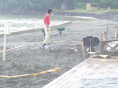 雨雲で何も見えません、上陸したものの・・・、仕方なくとんぼ帰り
