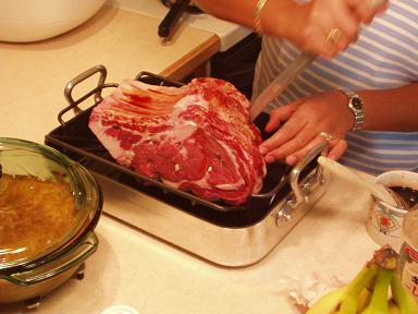 均等ににんにくを刺せるよう、まんべんなく全面に切れ目を入れていきます。